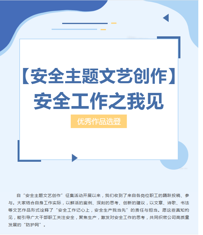 安全主题文艺创作“安全工作之我见”【优秀作品选登】
